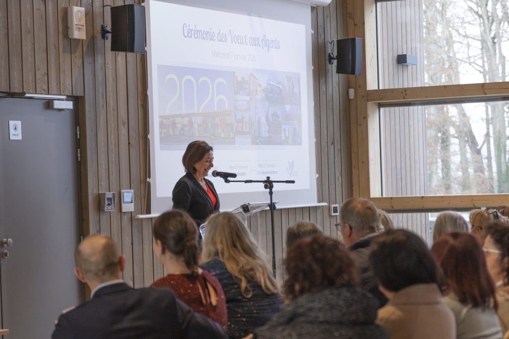 Madame le Maire a poursuivi son discours en évoquant les grands projets de 2026. Parmi les projets phares figurent la construction du nouveau bâtiment multifonctionnel, permettant d’accueillir un restaurant scolaire, une bibliothèque, des salles de réunion ainsi que certains services municipaux.