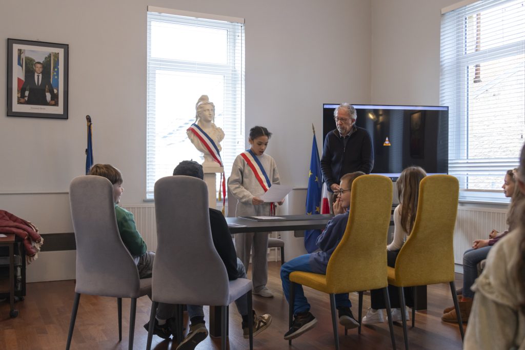 Hier matin, c’était au tour de la classe de CM2 de l’école élémentaire Saint-Exupéry de Monsieur Vayriot de se rendre à la mairie pour la visite hebdomadaire en présence de Madame le Maire et des membres de son équipe municipale.