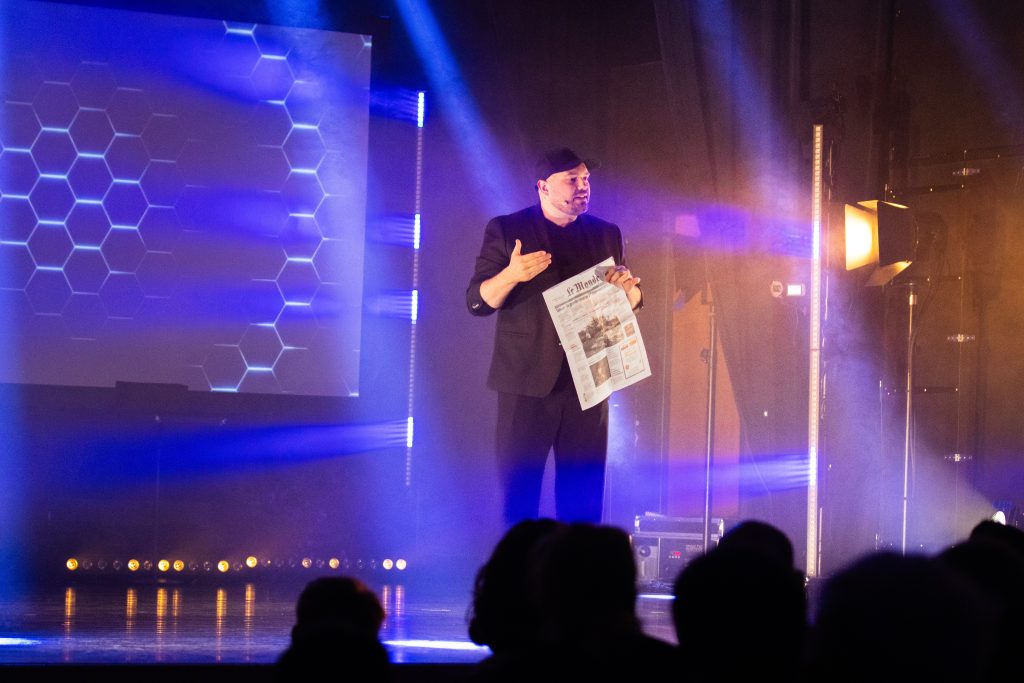 Fidèle à son style, Mathieu Stepson a bluffé l’assemblée en manipulant la réalité à travers nos objets du quotidien et les nouvelles technologies.